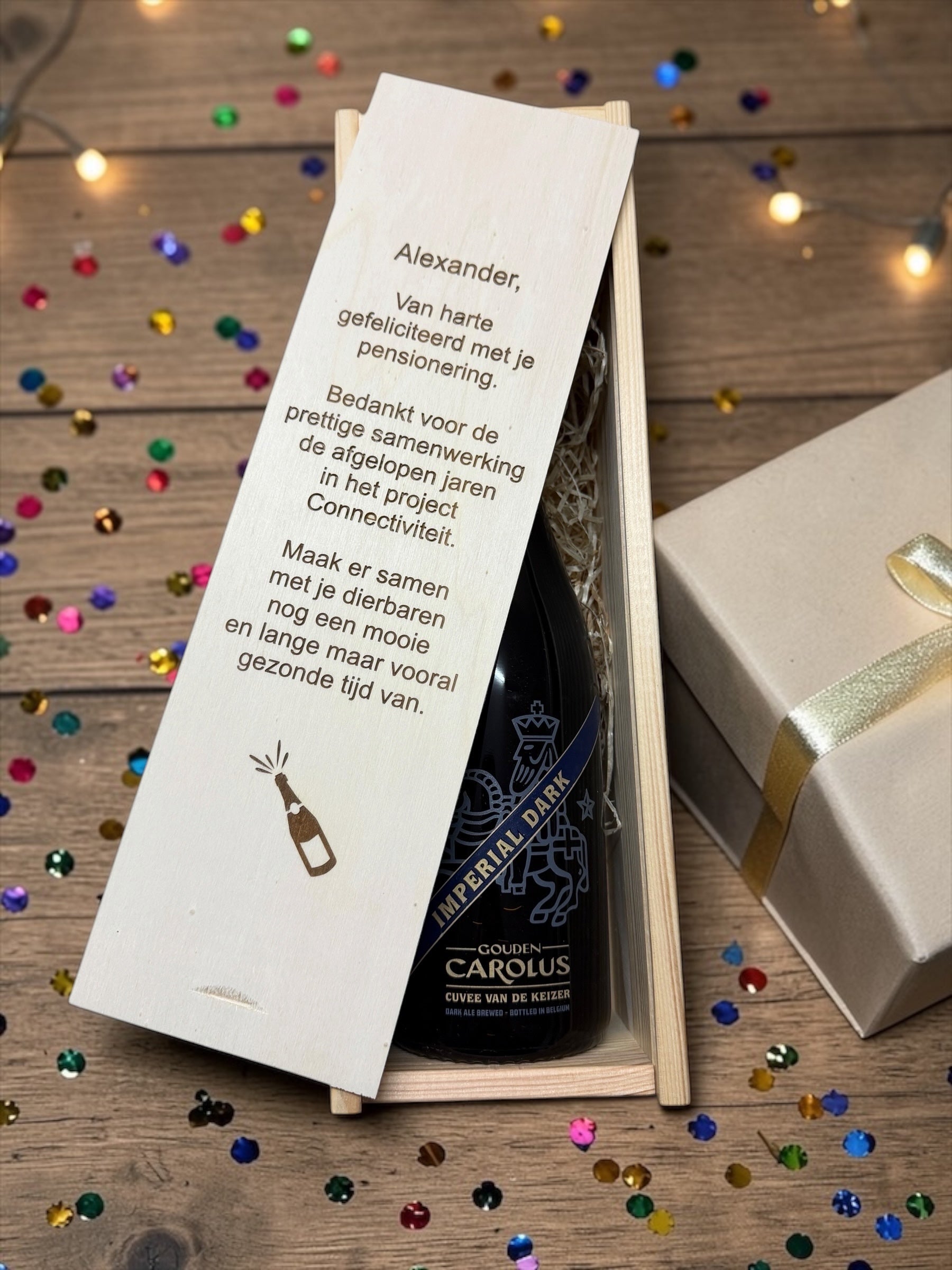 Met deze gepersonaliseerde bierkist geef je een cadeau dat écht blijft.